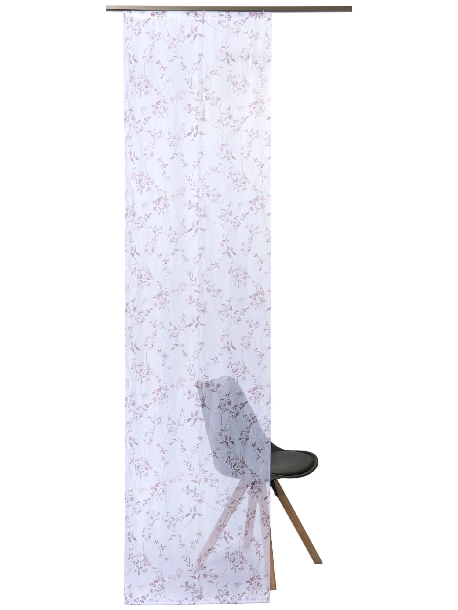 Transparenter Flächenvorhang in floraler Dessinierung. Aus 100 % Polyester.
