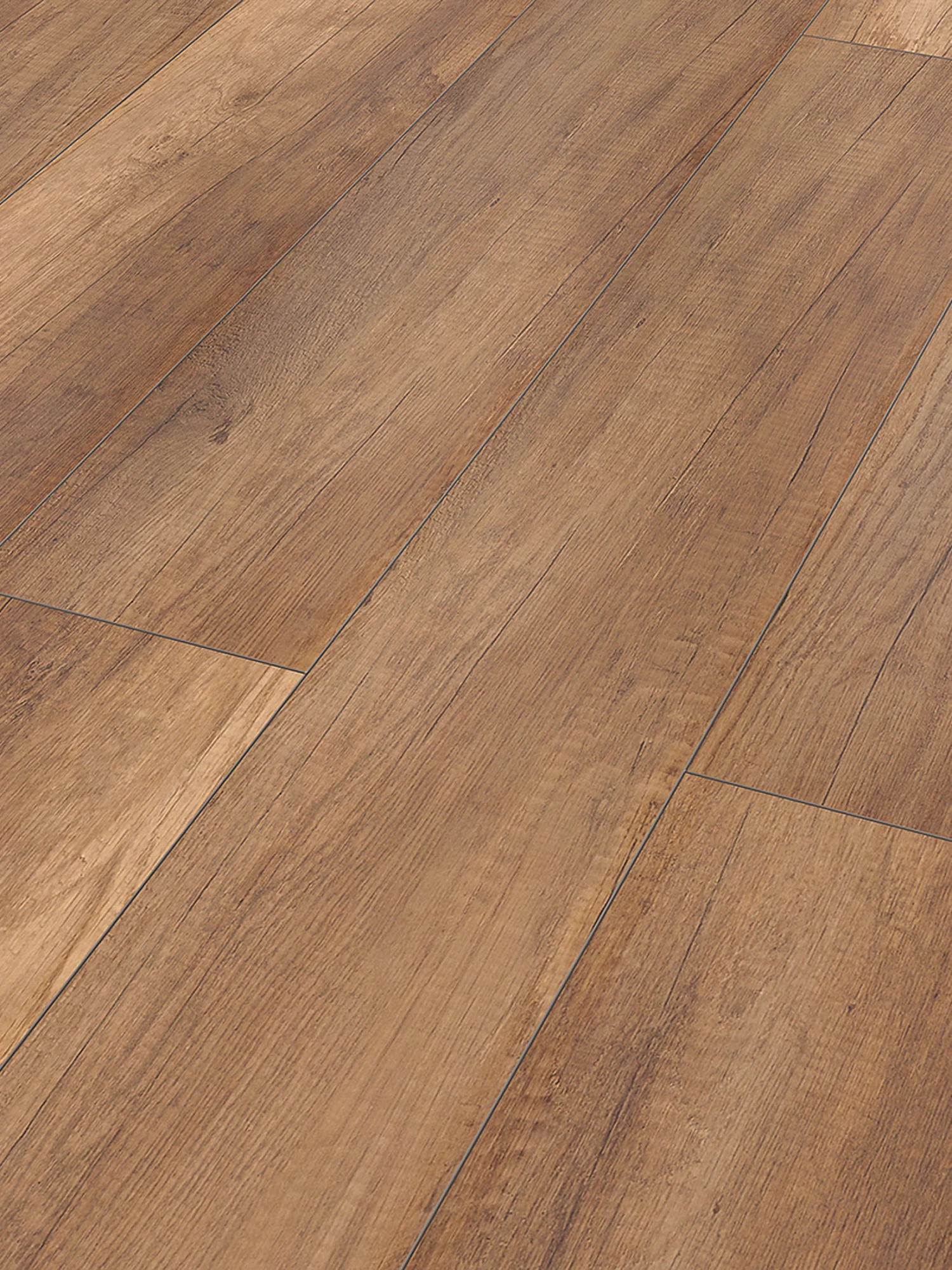 Dieser Laminat-Fußboden strahlt den authentischen Charme eines handwerklichen Holzbodens aus, denn seine Pluspunkte sind nicht nur die Wertigkeit der verwendeten Materialien, sondern auch die perfekte Verarbeitung. So sorgt seine feine V-Fuge an allen vier Seiten für ein detailgetreues Fugenbild und die fühlbare Oberflächenprägung entspricht der von echtem Holz.