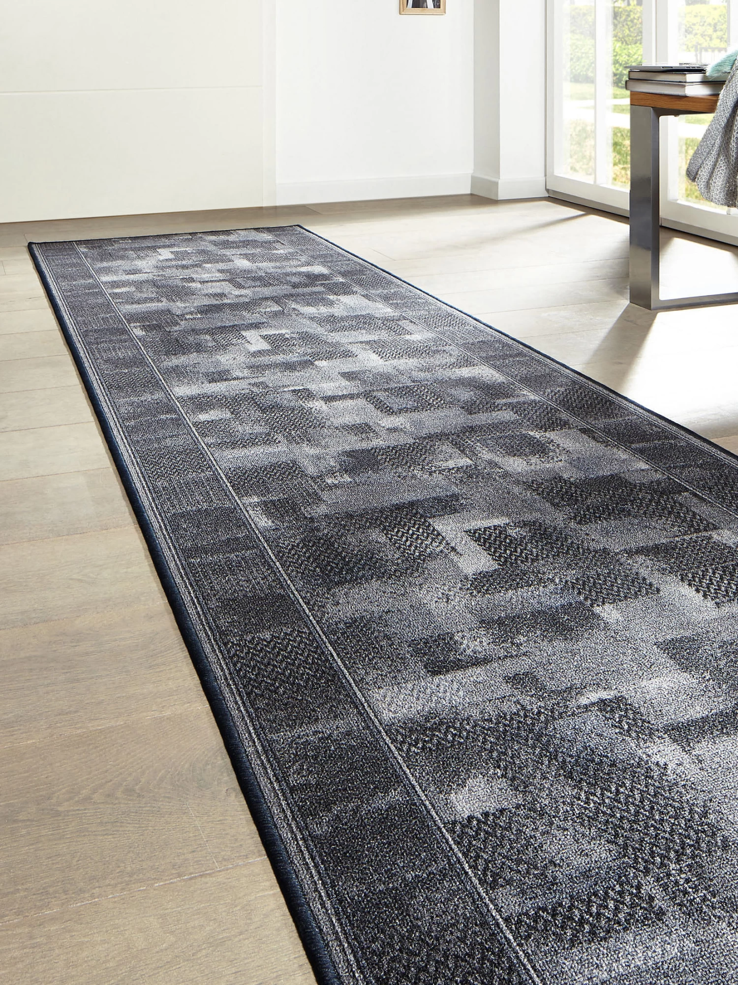 Strapazierfähiger Vintage-Läufer in harmonischer Farbkombination. Seitlich ist der Läufer mit farblich abgestimmtem Garn eingefasst. Gesamtgewicht ca. 1230 g pro m², Gesamthöhe ca. 5 mm, Flor aus 100 % Polyamid. Die Schnittkanten werden grundsätzlich mit passendem Garn umkettelt.