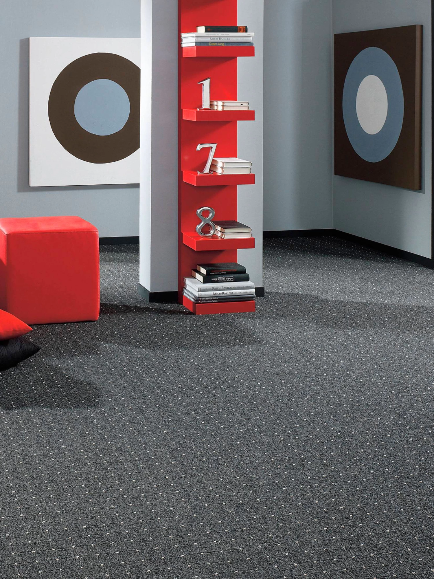 Moderner Strukturschlingen-Teppichboden für das junge Wohnen. Robust, strapazierfähig und pflegeleicht. Sein Gesamtgewicht beträgt ca. 1420 g pro m², und er hat eine Florhöhe von ca. 3 mm.