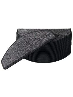 Stufenmatten mit einem, äußerst dichten Flor. Durch eine stabile Winkelschiene bleibt die Stufenmatte formbeständig. Ein rückseitig angebrachter Klebestreifen sorgt für sicheren Halt auf der Treppe. Mattengröße: ca. 28 x 65 cm.