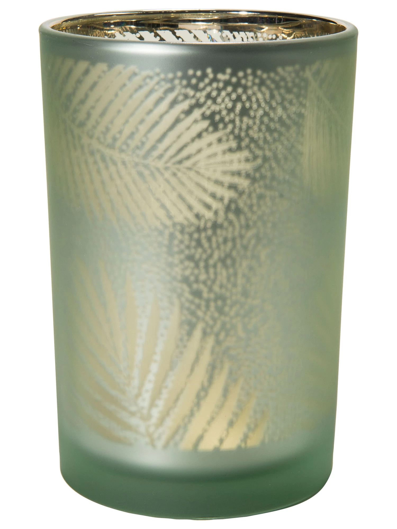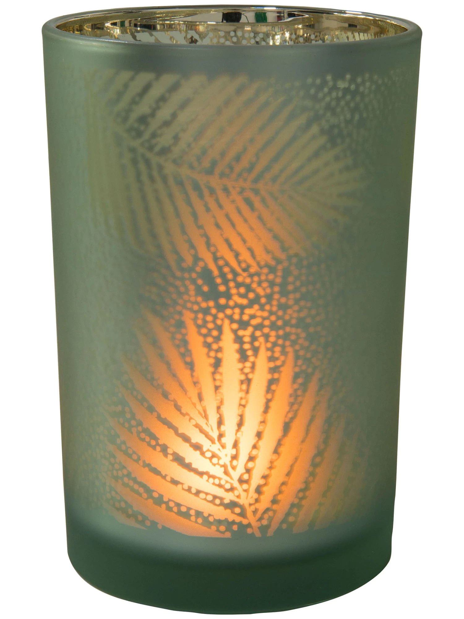 Teelichthalter aus Glas. Sandgestrahltes Blattmotiv.