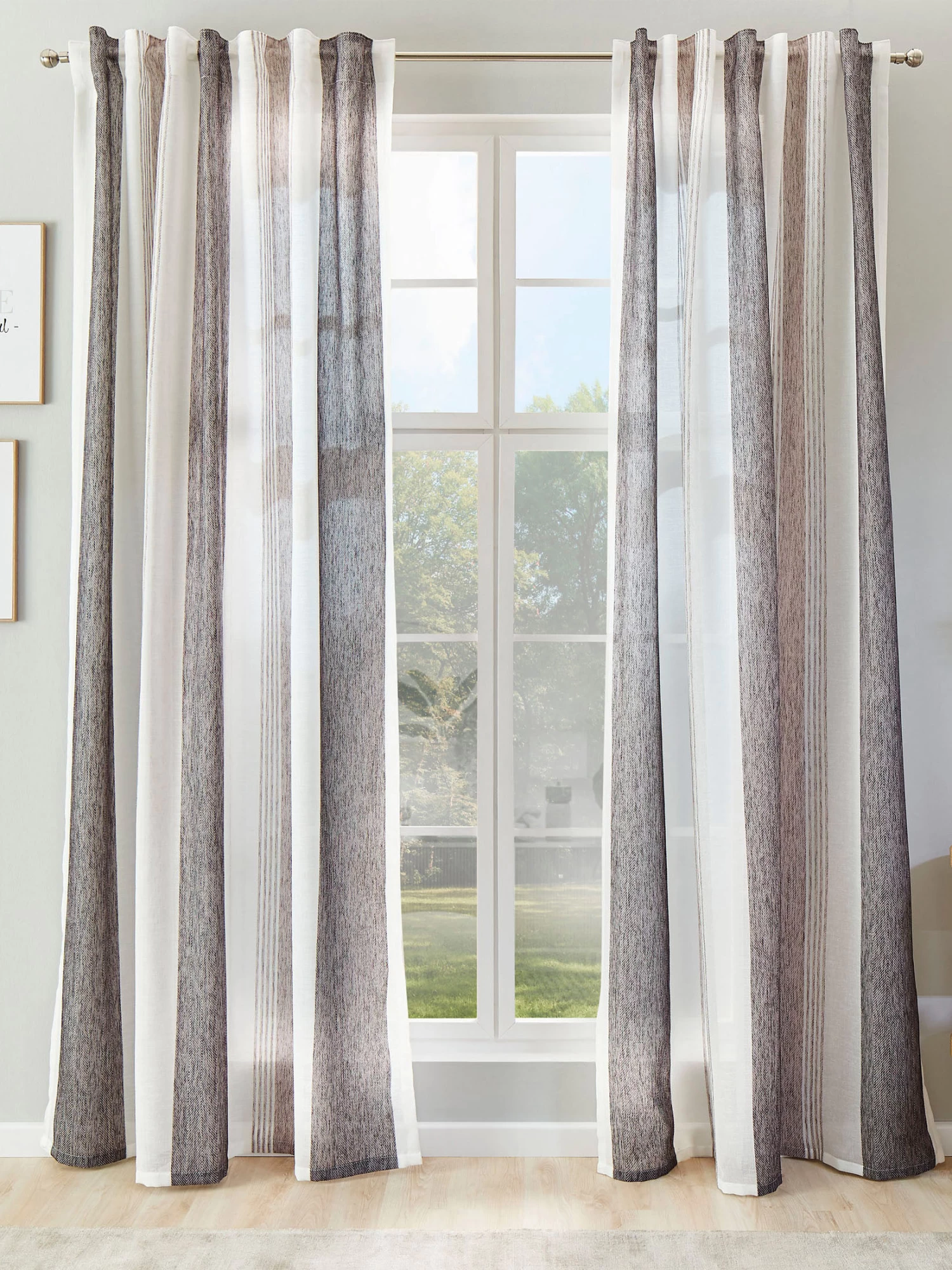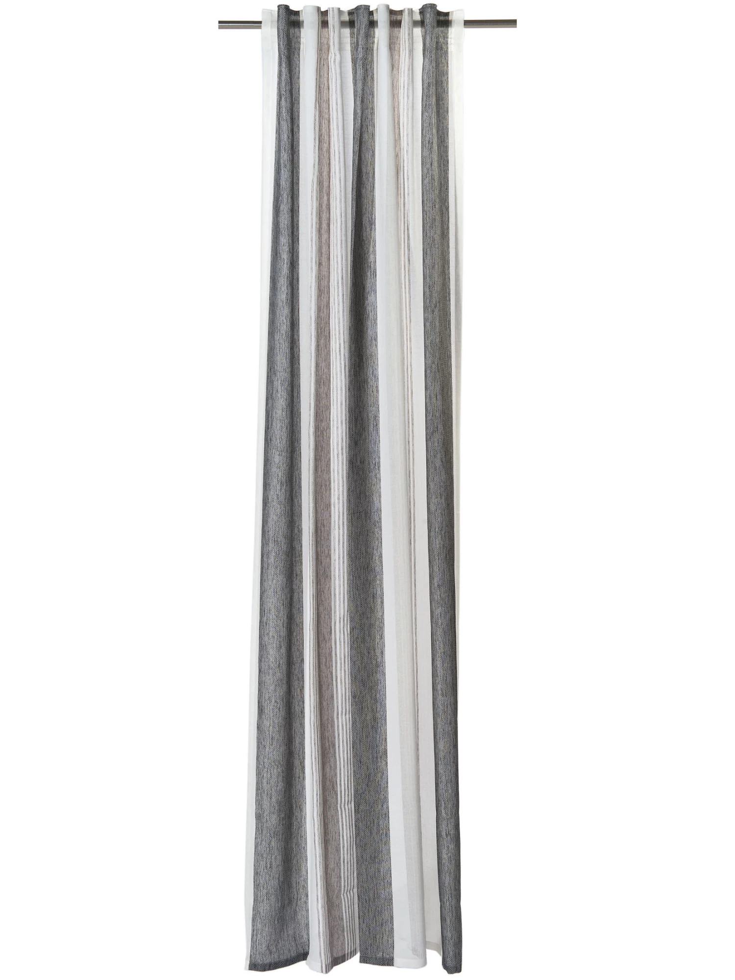 MALENA ist ein moderner Vorhang im Streifendesign mit Gardinenband. Aus 100 % Polyester. Waschbar bei 30° C. Öko-Tex Standard 100.